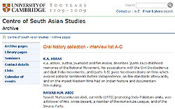 Oral history collection, University of Cambridge, Centre of South Asian Studies